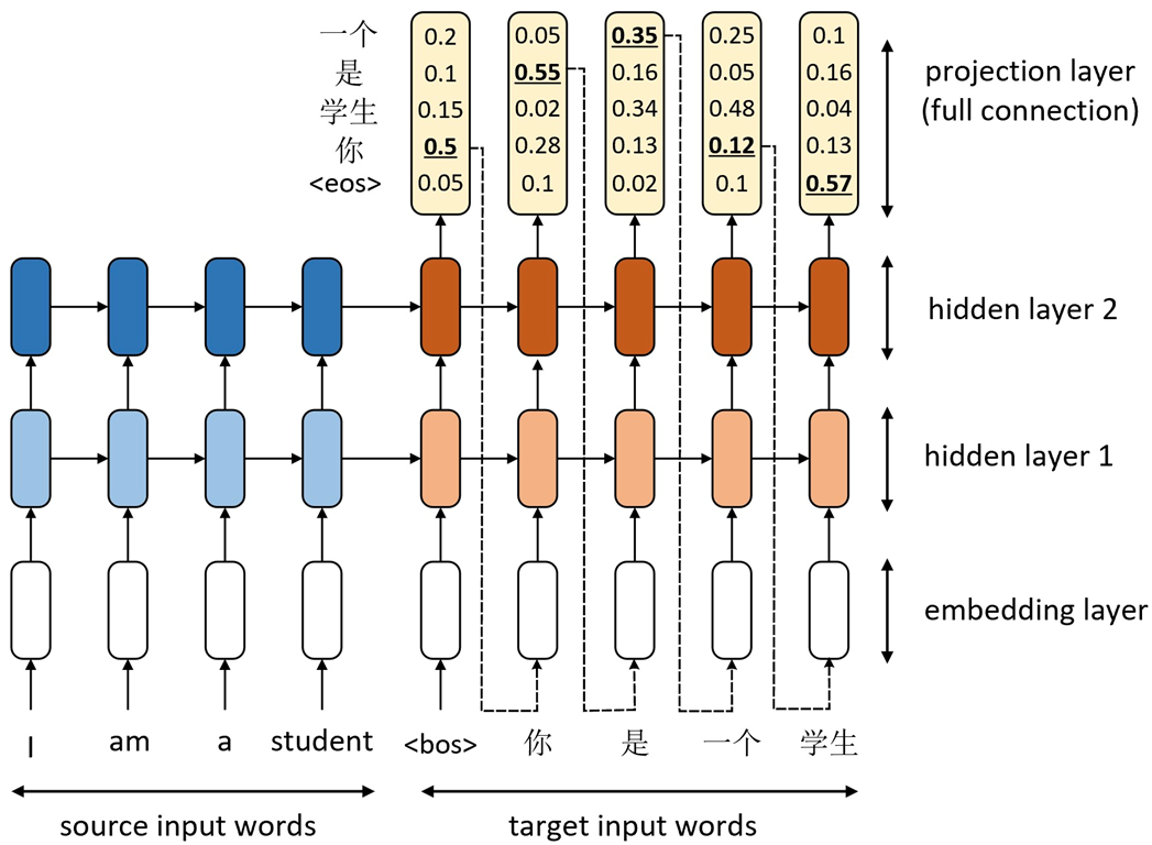 在Seq2Seq任务中,源输入序列的不同部分通常都具有不同的重要性,然而传统RNN-based Encoder-Decoder模型在处理这一过程时并没有考虑到这种情况,因为它只是依靠上一个时刻的解码输出来对当前时刻进行解码。如下图所示,当解码器对第三个时刻“是”进行解码时应该更加关注第2个时刻am对应的位置。传统的RNN-based Encoder-Decoder架构中无论输入句子多长,整个信息都被压缩成一个固定长度的向量(context vector)。当句子很长或信息复杂时,编码器很难在一个向量中保留所有关键信息,解码器生成后期内容时,早期信息容易被遗忘,导致长距离依赖丢失、翻译质量下降。