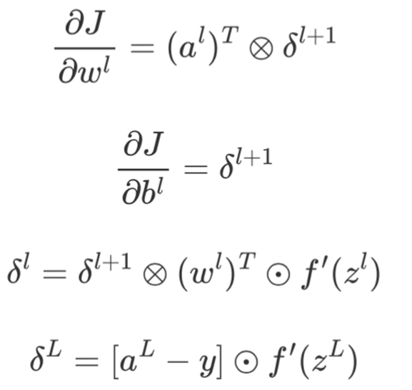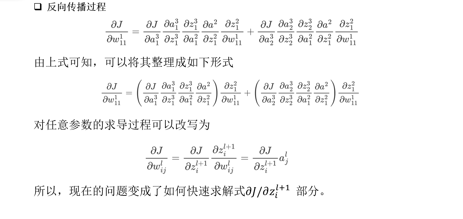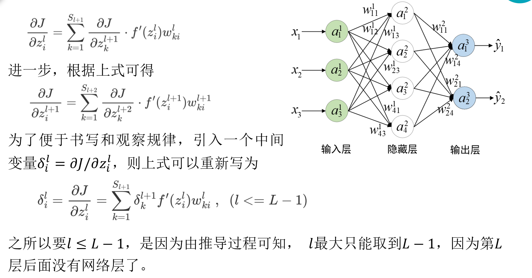 2.要想求解第l层参数的偏导数,一定会用到第l+1层上的中间变量 δ(l+1);