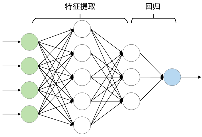 对于输出层之前的所有层,都可以将其看成是一个特征提取的过程,而且越靠近输出层的隐含层也就意味着提取得到的特征越抽象。当原始输入经过多层网络的特征提取后,就可以将提取得到的特征输入到最后一层进行相应的操作(分类或者回归等)。